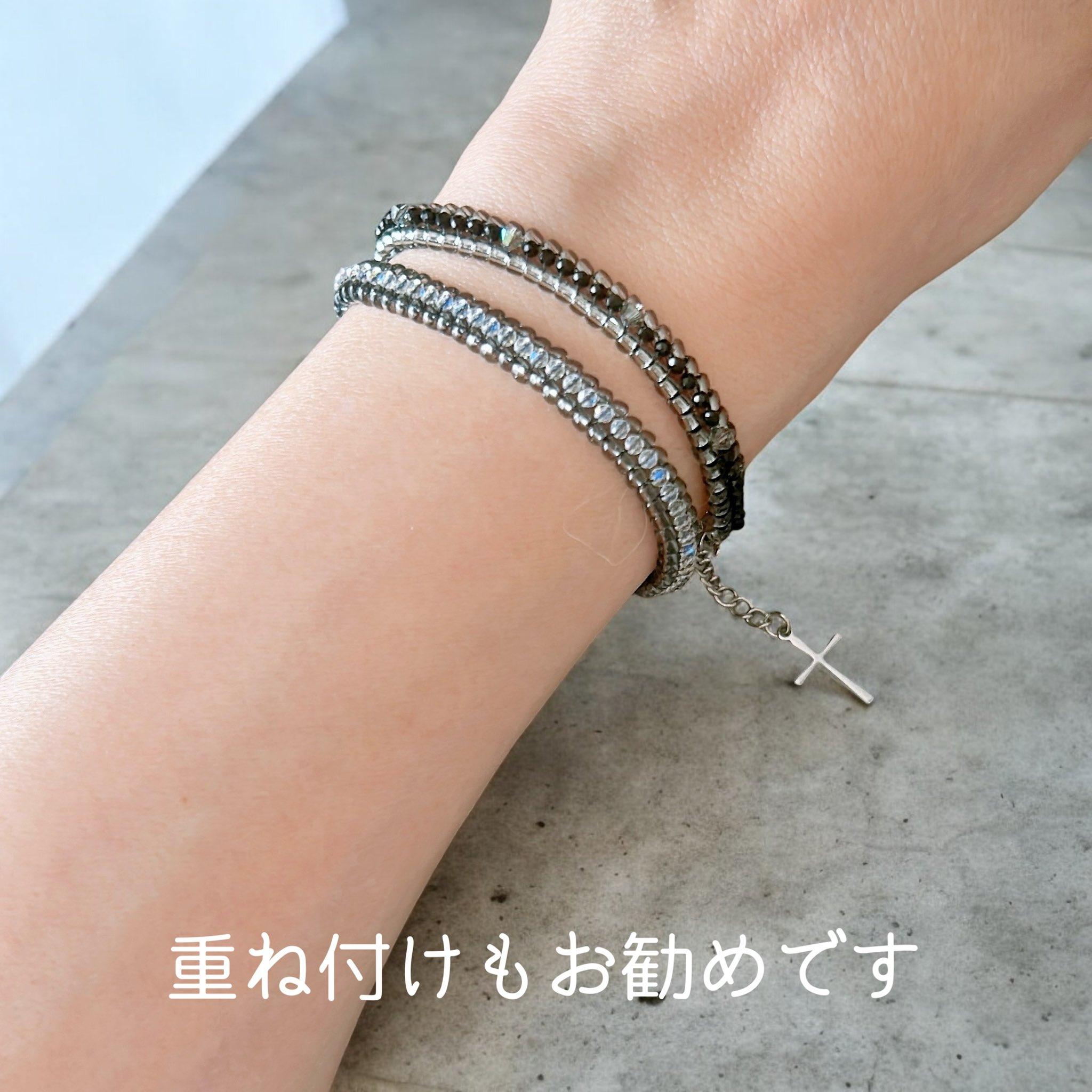 ビジューとラメコードのスリムブレスレット【サイズオーダー】
