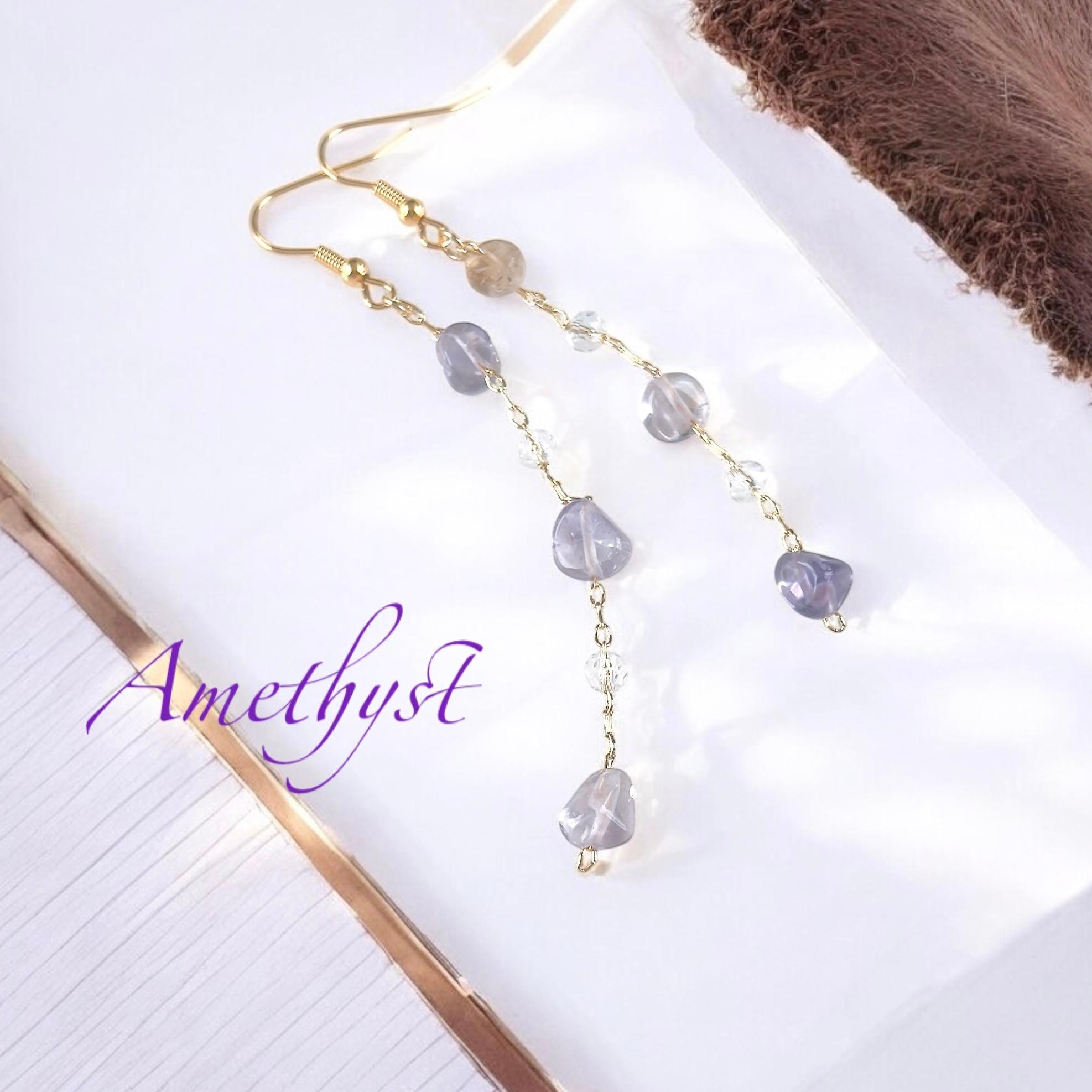 ペールトーンの清楚な装い*天然石ピアス*シルバー925・ロジウムコーティング