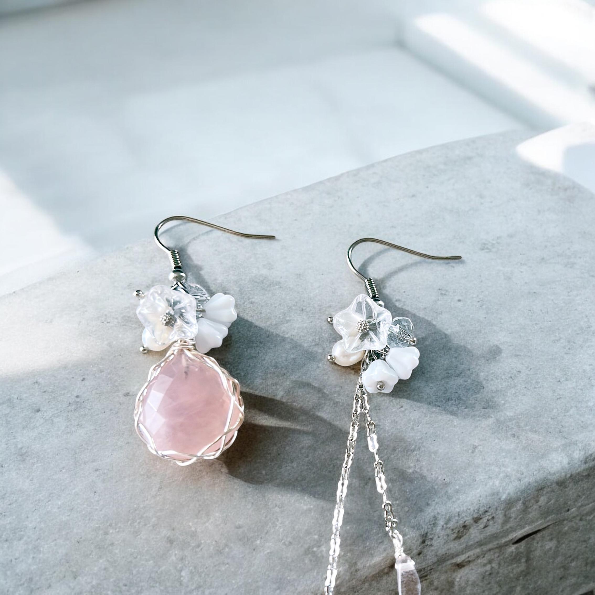 ペールトーンの清楚な装い*天然石ネックレスとピアスのセット*シルバー925・ロジウムコーティング