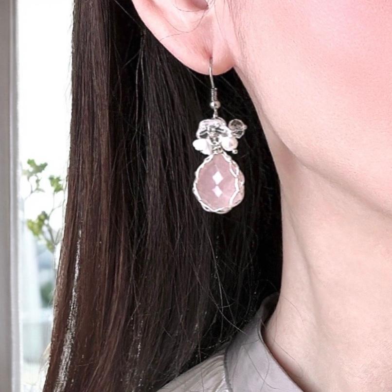 レースのような透け感が涼しげなマクラメピアス【天然石】 クラッククオーツ 水晶